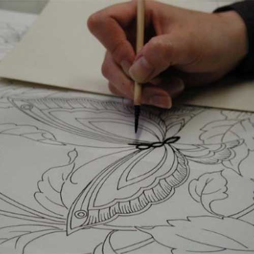 Coolies Studioのデザインの基本は手描き。デジタル全盛の時代において、手で描き上げることによって実現するオリジナリティあふれるテキスタイルは、他では得られない特別な素材として多くのお客様に愛されています。