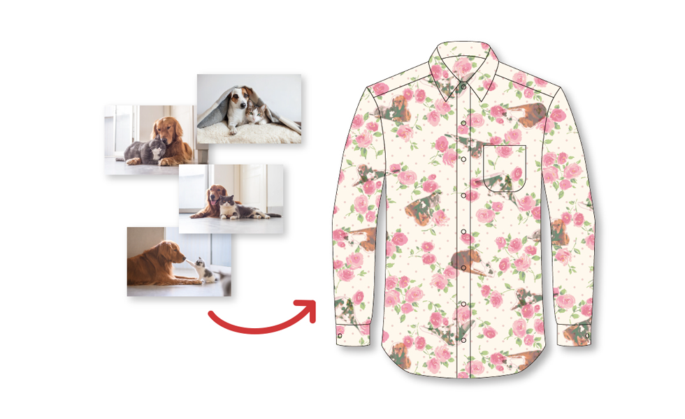 旅先で出会った素晴らしい風景や家族の楽しい時間、ペットの愛らしい表情など。誰のスマホのアルバムにも必ずやある1ショットを、ただそのまま載せるのではなく、プロならではの技術で「着るアート、見るアート」であるテキスタイルにデザインします。